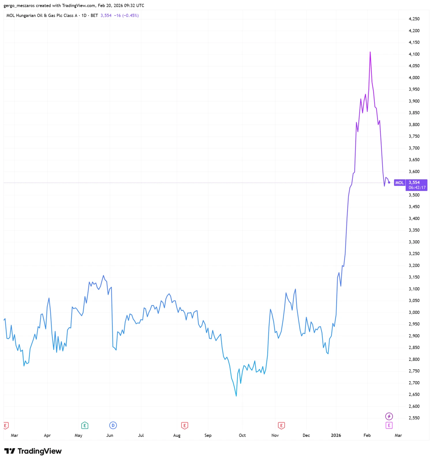 Az olajipari cég befektetőinek tényleg nem volt unalmas az elmúlt pár hónap. A tavaly tetszhalottként tetszelgő papír az idei év elején a NIS-felvásárlás, valamint a régiót érintő átfogó nemzetközi befektetői bizalom eredményeként valósággal kilőtt, egy ponton a 4 ezer forintos lélektani határt is elérte.